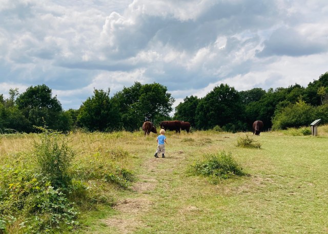 It’s also worth noting that a large area of the park is also pasture for a herd of cows, so please keep gates closes where indicated. Littlie was fascinated by the cows (he doesn’t see much livestock up close, the Londoner that he is) and the cow-pat-dodging caused many squeals of delight.